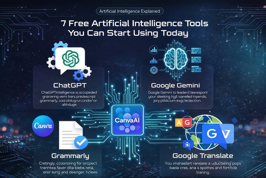 In this in-depth guide, you will discover 7 free Artificial Intelligence tools you can start using today, even if you have no technical background. More than just listing tools, this article explains how they work in practice, who they are best for, their limitations, and how beginners can use them responsibly and effectively.